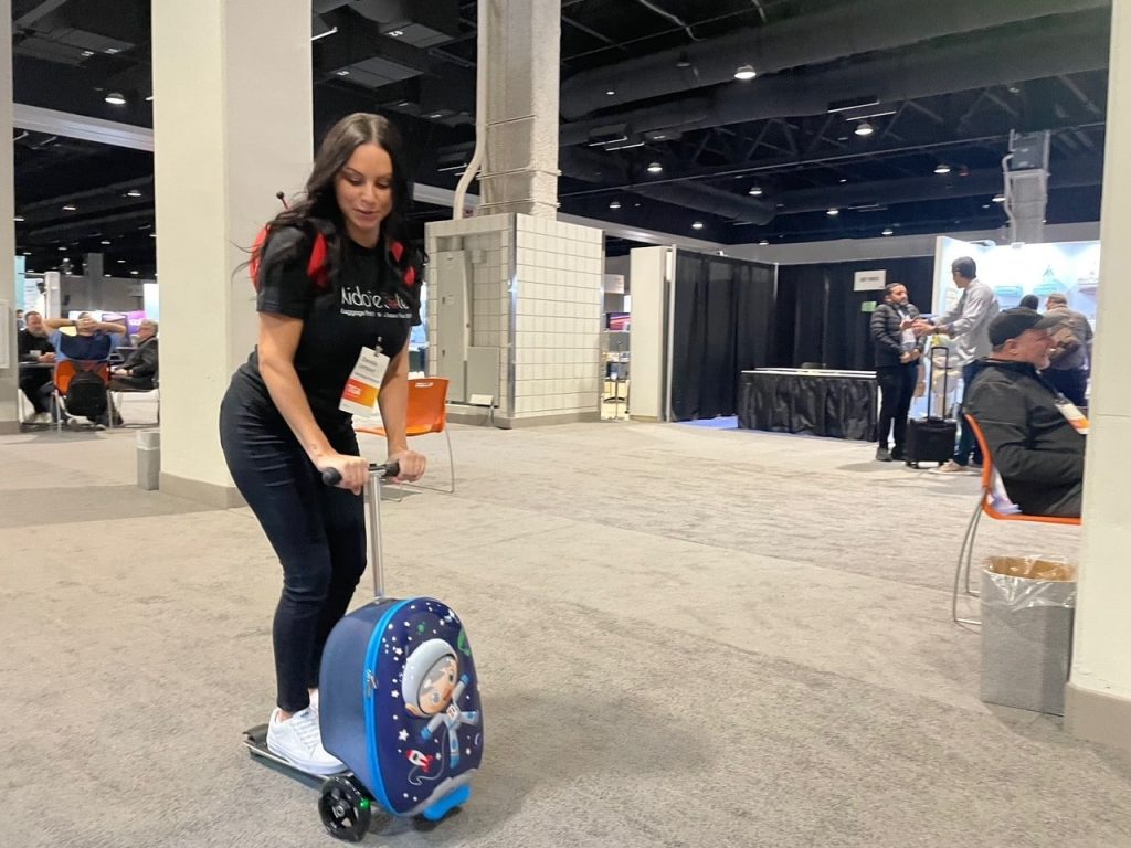 bolsa infantilbagagem de scooter, $ 129: A bagagem tipo scooter não é diferente para as crianças, mas também é verdade para os pais, que muitas vezes se aglomeram em viagens em família. “Estamos ensinando às crianças um pouco de responsabilidade e independência”, disse Nicole Jonathon, consultora da empresa. Ela diz que a scooter é voltada para crianças de 3 a 8 anos e torna a bagagem de mão divertida e transportável, sem reclamar. No portão, o convés dobra-se na parte de trás da sua bagagem para corresponder ao tamanho da bagagem de mão da companhia aérea. A única vantagem que dá a esta bolsa uma emocionante vida dupla é que as rodas giram com luzes LED coloridas.
