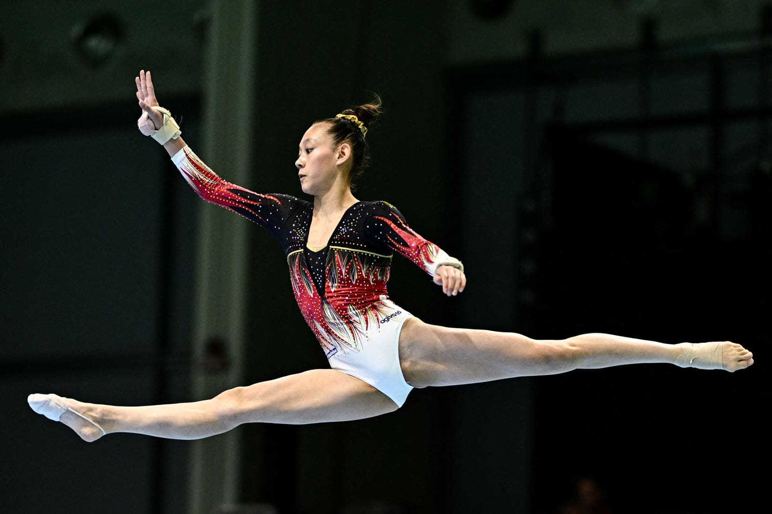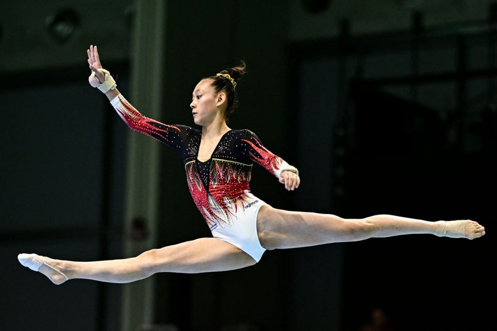 Erika Pinkten, da Bélgica, compete no solo durante a final individual geral feminina sênior do 35º Campeonato Europeu de Ginástica Feminina, realizado em Rimini, na costa do Adriático, no nordeste da Itália, em 2 de maio de 2024. (Foto cortesia de GABRIEL BOUYS) / AFP)