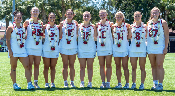 A equipe feminina de lacrosse da Florida Tech, 20ª colocada, homenageou seus nove veteranos no sábado, antes de enfrentar Lynn, 13ª colocada. Os nove veteranos Panteras homenageados incluíram Millie Hart, Carly Liebendorfer, Maggie Reed, Kayla Vendemir, Lizzie Christ, Jenny Boyle, Olivia John, Kayla Minton e Ashley Walter. (Imagem do Instituto de Tecnologia da Flórida)