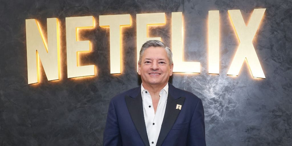 O co-CEO da Netflix, Ted Sarandos, 59, diz que nenhum criador ou ator de cinema ainda perdeu seus empregos para programas de IA.
