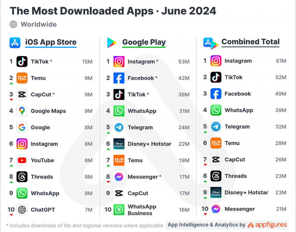 Estamos na metade de julho de 2024, o que significa que é hora de obter informações relevantes sobre aplicativos para junho. Abaixo compilamos as estatísticas das plataformas mais baixadas e mais lucrativas. Então vamos dar uma olhada!
