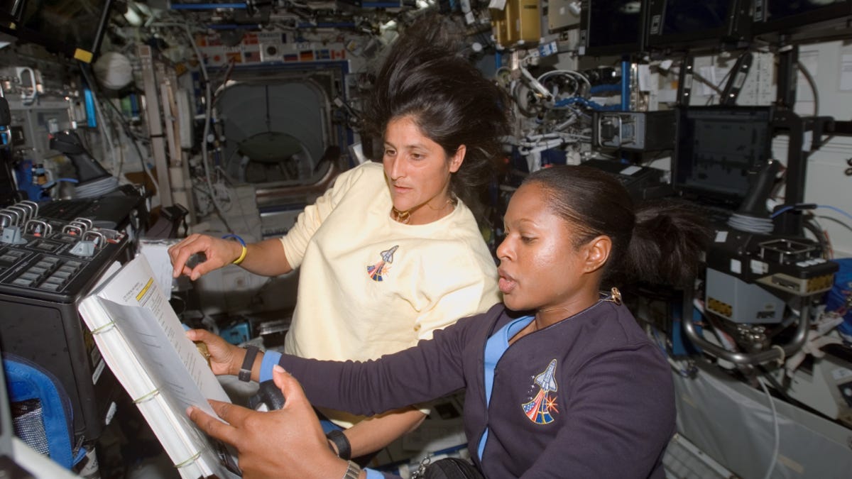 Quais eram as probabilidades? Os astronautas da NASA Suni Williams e Joanne Higginbotham voaram lado a lado em dezembro de 2006 para operar o braço robótico da Estação Espacial Internacional. Ambos tinham mestrado pelo Florida Institute of Technology.
