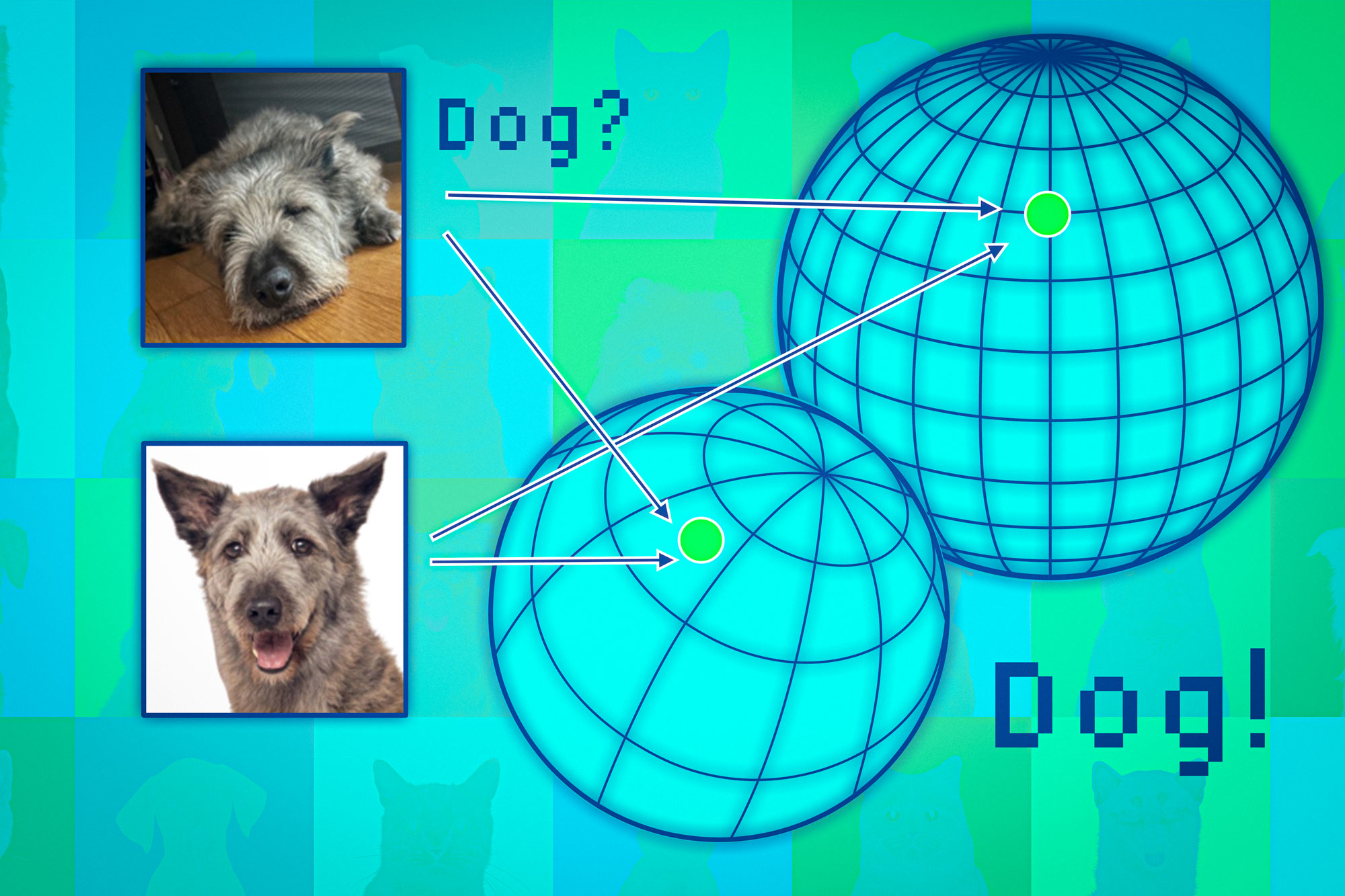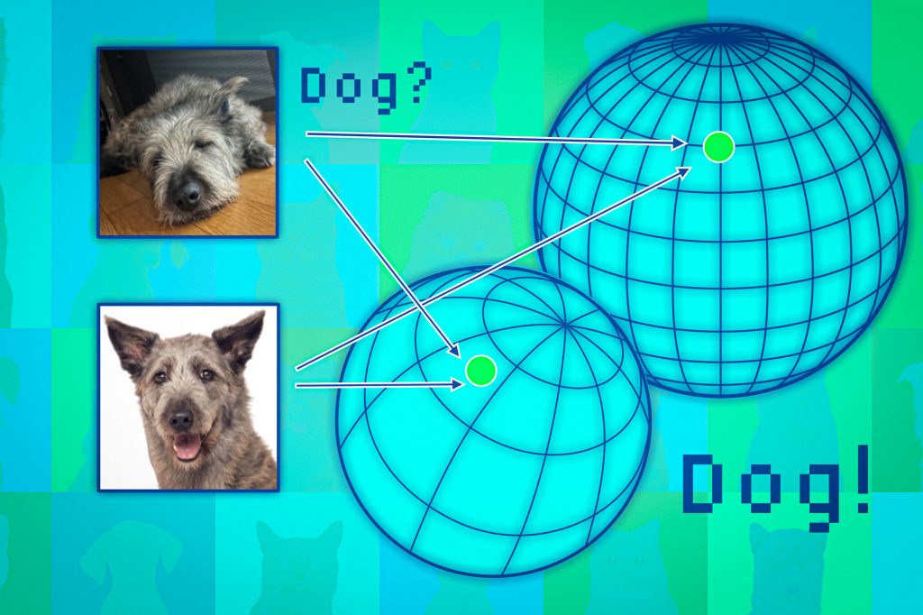 O modelo subjacente mapeia pontos de dados em um espaço conhecido como espaço de representação. Uma maneira de pensar neste espaço é como uma esfera. Cada modelo mapeia pontos de dados semelhantes para a mesma parte de sua esfera, de modo que a imagem do gato é colocada em um lugar e a imagem do cachorro é colocada em outro.