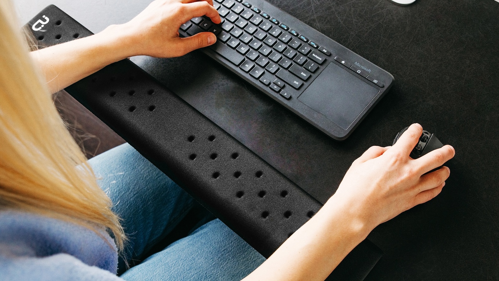 Descubra o EdgeRest da PostureUp. A solução definitiva para proteger seus braços durante longas horas de trabalho. Criada por fisioterapeutas, esta almofada em forma de L cabe perfeitamente em quase qualquer mesa e oferece máximo conforto e suporte.