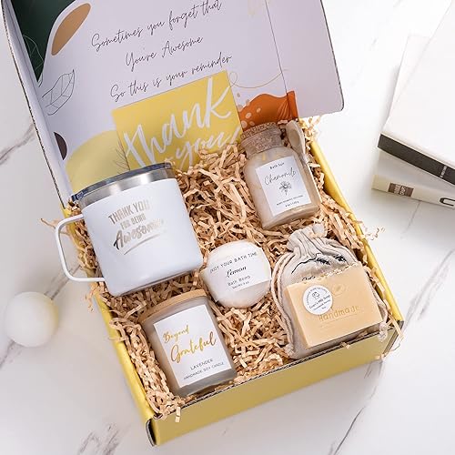 Se alguém fez algo especial para você recentemente, “obrigado” pode facilmente se tornar “Recebi esta caixa de presente de agradecimento”. Você pode desfrutar de uma mini viagem ao spa em uma caixa. Inclui sais de banho, bomba de banho com aroma de limão, sabonete em barra com aroma de limão de cortesia e vela de lavanda. Você pode desfrutar de uma boa taça de vinho em sua nova caneca isolada enquanto relaxa na banheira com seu presente de spa.