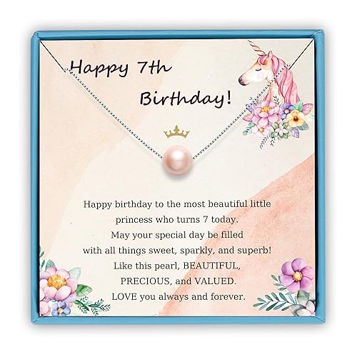 E se você pensar bem, sua princesinha completa 7 anos este ano. Ela deve saber que um dos melhores presentes que uma garota pode receber são as joias. Comece seu sétimo ano com este adorável colar de serenidade. Com uma simples pérola rosa e um bilhete especial na caixa, ela brilhará de alegria.