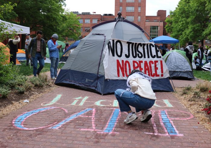 Estudantes da Universidade George Washington, Georgetown e outras universidades de Washington, D.C. montaram um acampamento pró-palestino no campus da GW na quinta-feira. O acampamento começou às 5h, após protestos semelhantes em outras escolas, incluindo a Universidade de Columbia e a Universidade de Harvard.repórter voz As primeiras 24 horas foram passadas no local. Esta é a aparência do interior:
