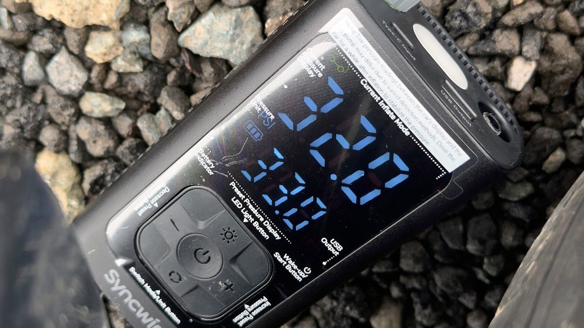 Syncwire possui quatro modos para inflar vários itens, como carros, bicicletas, bicicletas, bolas, etc., bem como um modo personalizado que pode ser predefinido para uma faixa de pressão específica.