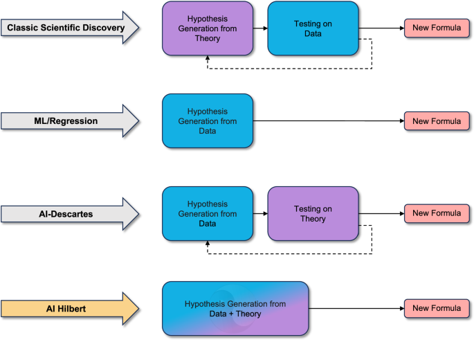 as previously summarized in Fig. 3. This is significant, because existing works on symbolic regression and scientific discovery22,75 often struggle to derive Kepler’s law, even given observational data. Indeed, our approach is also more scalable than deriving Kepler’s law manually; Johannes Kepler spent four years laboriously analyzing stellar data to arrive at his law76.