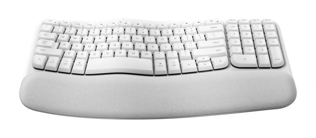 O teclado Wave Keys (US$ 59,99) cabe na maioria das mesas e coloca seus ombros em uma posição mais natural ao usar o mouse. Ele vem com três baterias AAA que podem alimentar o teclado por até três anos, de acordo com testes da Logitech. Bluetooth e tecnologia de baixo consumo de energia emparelham-se instantaneamente com computadores Mac, iPhones e iPads.