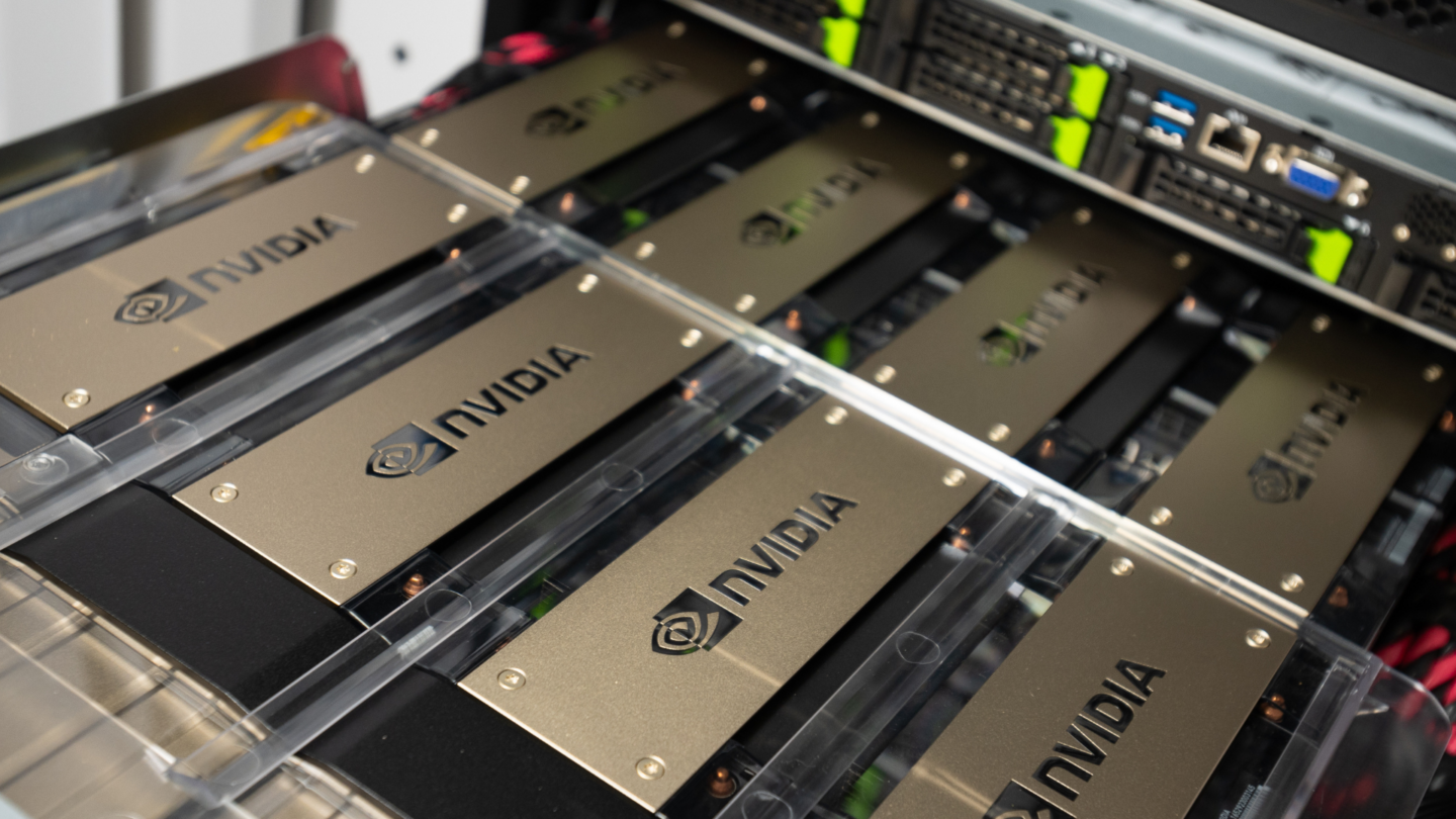 As unidades de processamento gráfico (GPUs) da NVIDIA são usadas em programas de inteligência artificial criados por empresas notáveis como OpenAI, Alphabet e Meta.