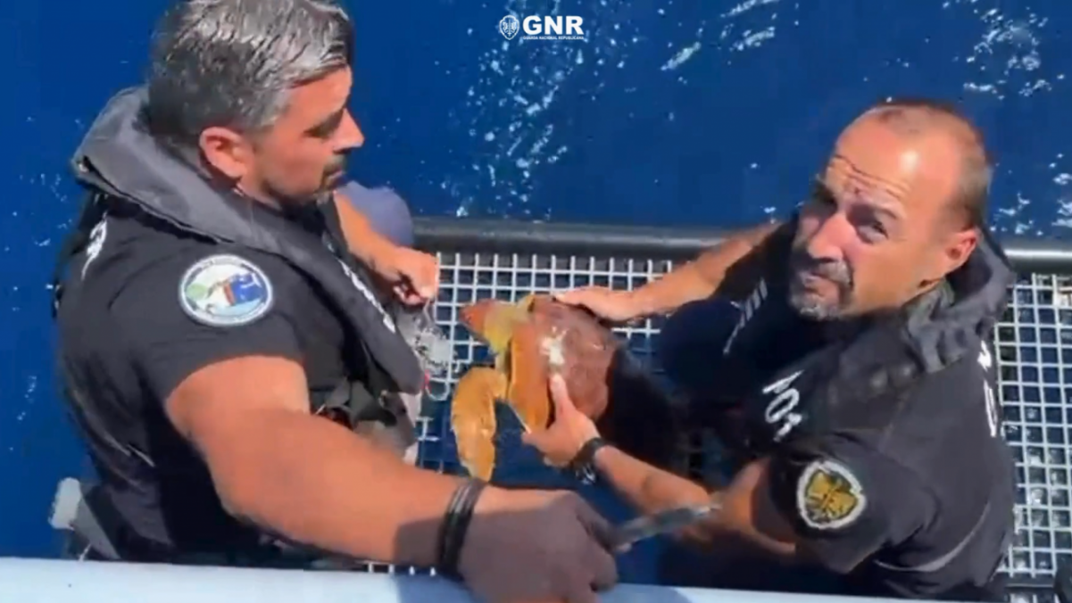 Os militares recuperaram a tartaruga, que tinha ficado presa nas redes, monitorizaram o seu estado de saúde, libertaram-na dos apetrechos de pesca e dos restos de materiais plásticos e depois libertaram-na no seu habitat natural.