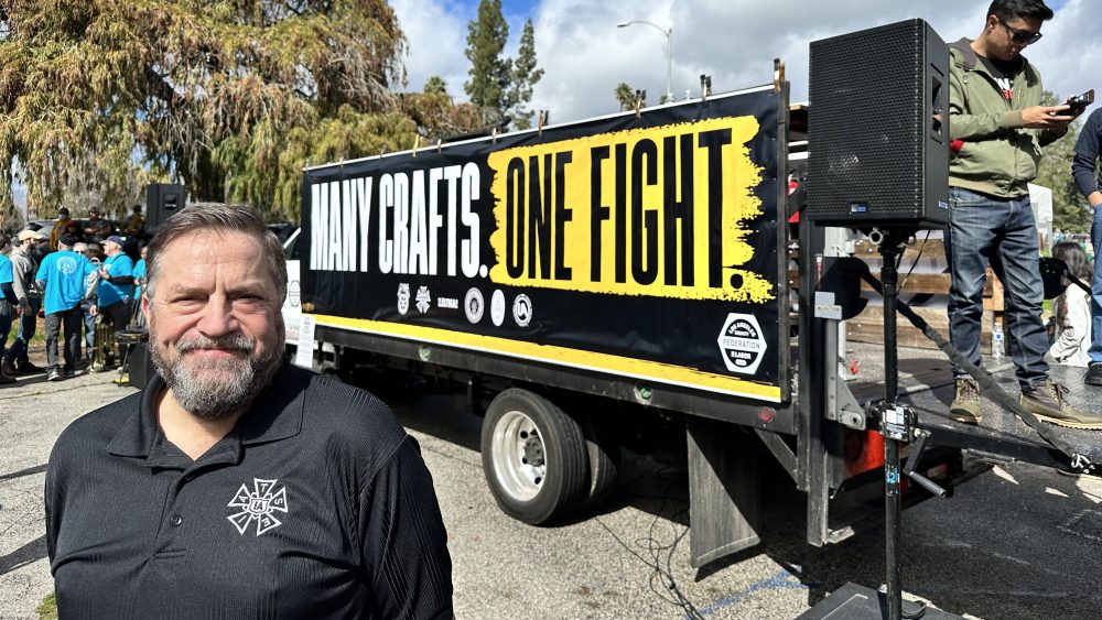 O presidente da IATSE, Matt Loeb, apareceu no comício