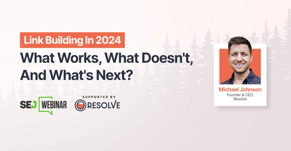 participar Michael Johnson, fundador e CEO da Resolve, analisa o que ele e sua equipe aprenderam, o que está funcionando para os clientes e como você pode melhorar sua abordagem ao link building.