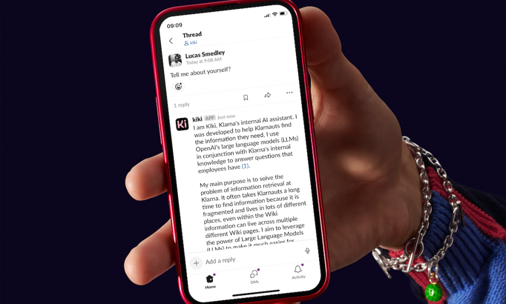 Kiki agora é usado Segundo o comunicado, 85% dos colaboradores da Klarna auxiliam na gestão e distribuição do conhecimento interno. As respostas às suas perguntas serão geradas em 5 segundos. ajudar os funcionários Encontre respostas e resolva problemas de forma independente.
