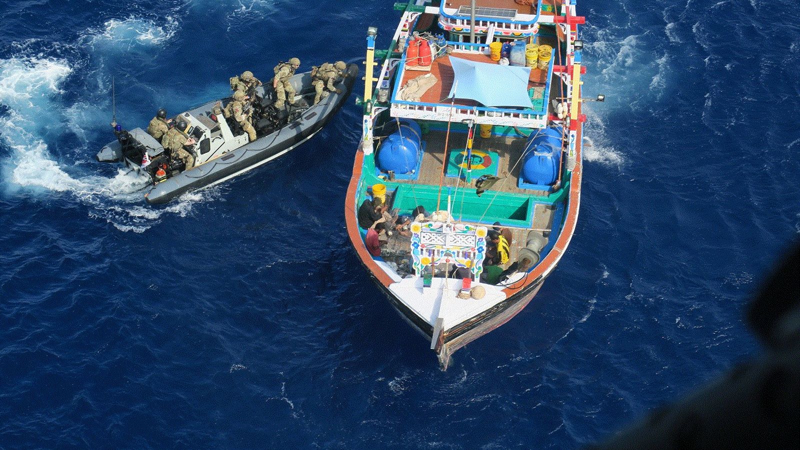 Duas embarcações suspeitas foram capturadas no primeiro dia da patrulha de segurança do HMS Lancaster no Oceano Índico.