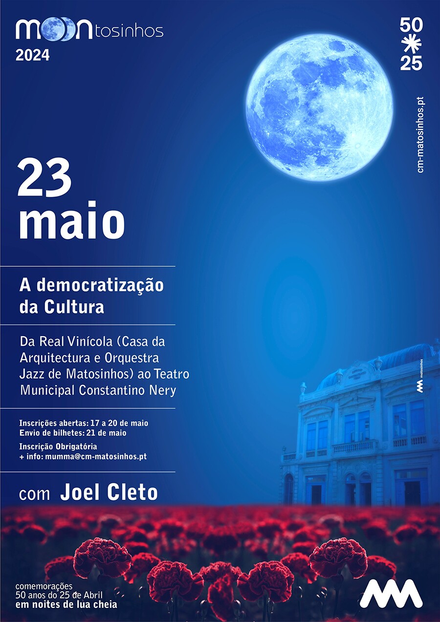 Inserida na programação preparada pela Câmara de Matosinhos para os 50 anos do 25 de Abril, a sessão será, como habitualmente, orientada pelo historiador Joel Cleto, e incluirá o percurso entre a Real Vinícola (visita à Casa da Arquitectura, Arquivo e Orquestra Jazz de Matosinhos) e o Teatro Municipal de Matosinhos Constantino Nery.