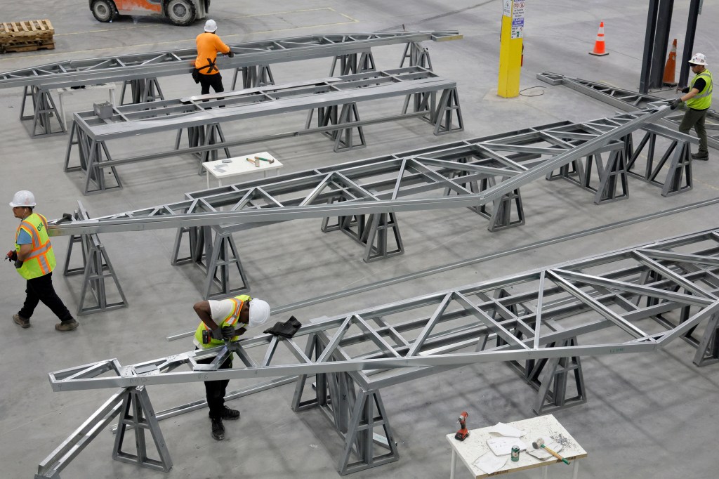 Nas passarelas elevadas com grades de aço da fábrica de Pompano Beach, os visitantes podem ter uma visão ampla do processo automatizado que forma rapidamente paredes internas e externas e componentes de telhado feitos de concreto. As janelas são embutidas em uma parede central modular de 20 centímetros de espessura e as treliças de aço leve são mais duráveis que a madeira e estão preparadas para entrega e instalação final na casa.