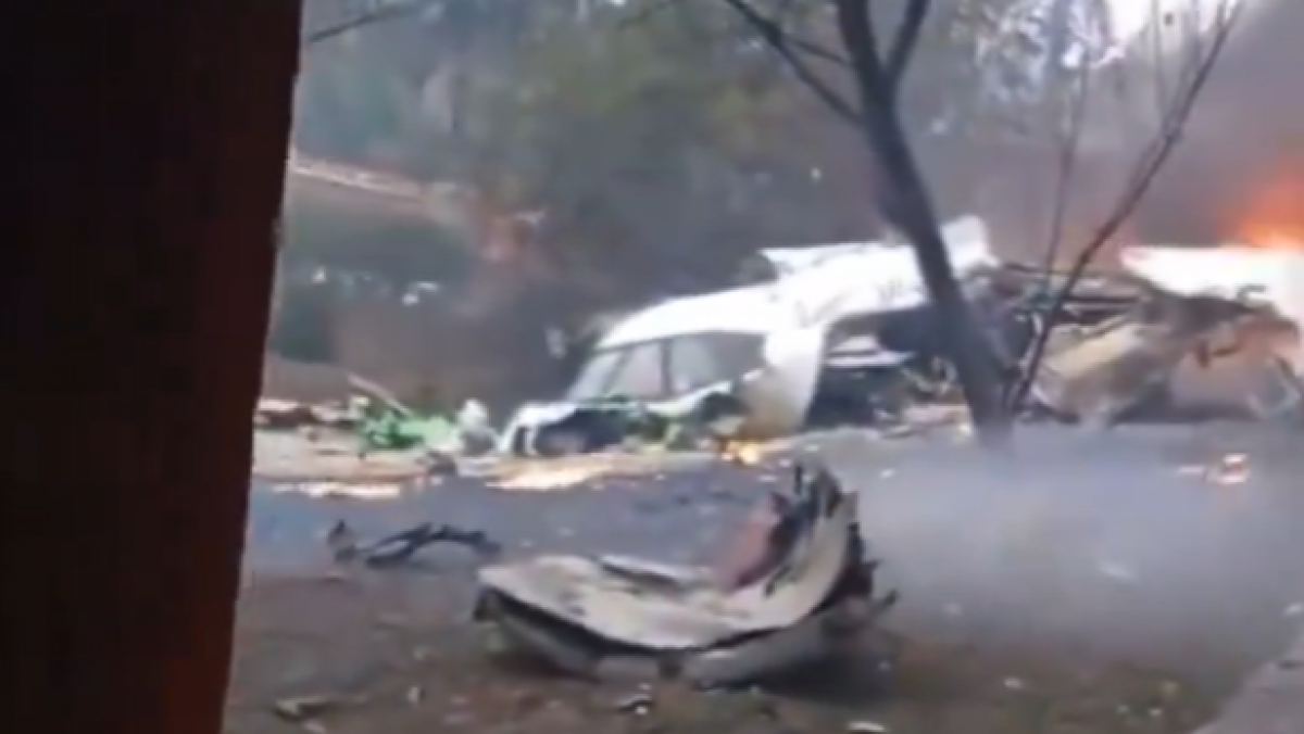 Um vídeo postado nas redes sociais mostra o avião circulando perto de várias casas antes de cair com um grande estrondo.