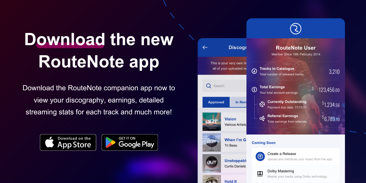 O aplicativo RouteNote já está na Apple App Store e a discografia já está disponível para iOS e Android