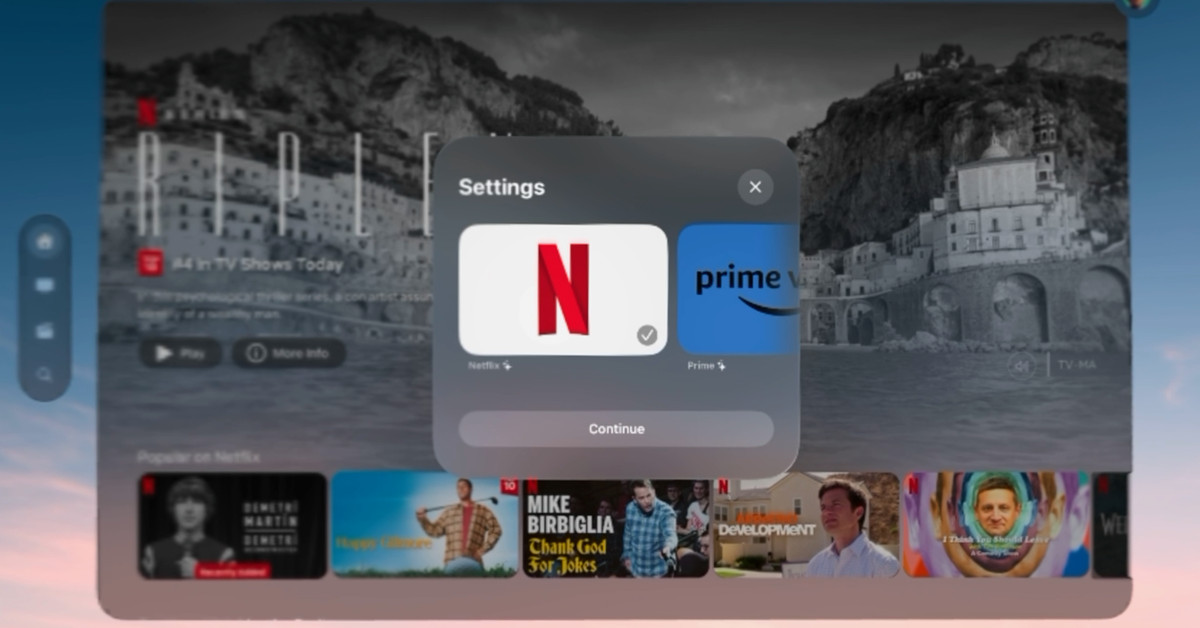 Sr. Privitelli disse: A beira Em uma entrevista, ele disse que vê o Netflix em uma visualização web semelhante à usada no player do YouTube de Christian Selig, Juno. “Basicamente, apenas sobrepomos uma interface de usuário nativa no site e, em seguida, modificamos o site para torná-lo mais utilizável no visionOS”, disse ele.