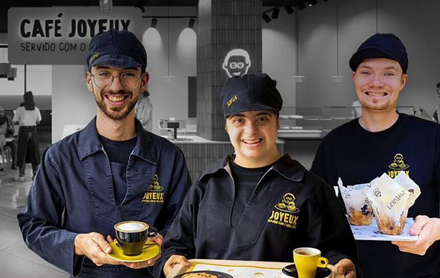 O Café Joyeux é um projeto de Vilacomvida, uma associação que promove a inclusão de jovens com dificuldades intelectuais e de desenvolvimento (DID), através de recrutamento, treinamento e integração no mercado de trabalho. Desde 2021, o projeto empregou mais de 30 jovens em Portugal.