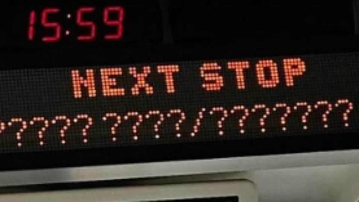 O software do ônibus está com defeito, causando confusão aos passageiros, pois eles não sabem para onde estão indo.