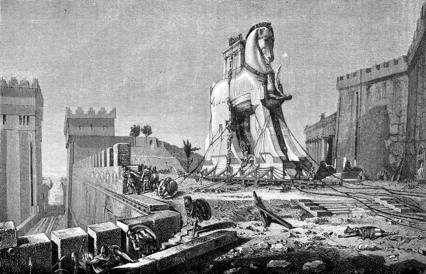 Você já viu esse cenário antes? Certamente parece um cavalo de Tróia para mim.