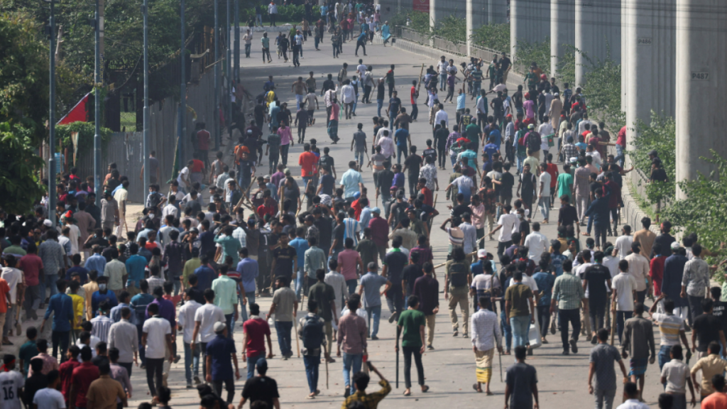 Pelo menos 77 pessoas foram mortas em confrontos entre opositores da primeira-ministra do Bangladesh, Sheikh Hasina, a polícia e apoiantes do partido no poder no domingo, o dia mais mortal desde o início dos protestos antigovernamentais no país.