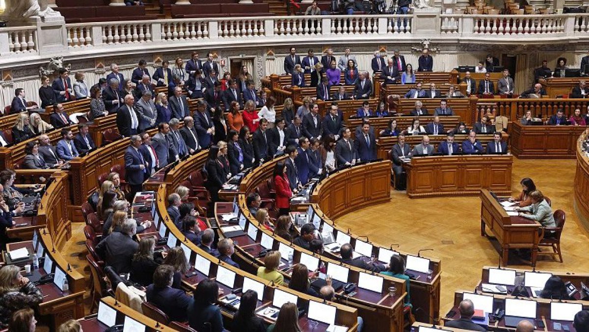 Nesta coluna, da esquerda para a direita, 2 deputados do BE, 2 deputados do PCP, 2 deputados do Libre, 5 deputados do PS, 5 deputados do PSD, 2 deputados da IL, 1 deputado do CDS. Os quatro deputados do Chega são sentado.