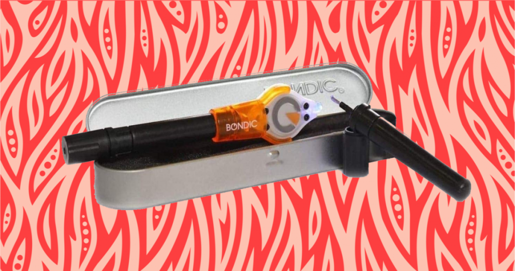 Este vídeo do TikToker @rachel_meaders tem 2,8 milhões de curtidas e continua aumentando. Possui uma pequena ferramenta de soldagem que espreme o adesivo de uma extremidade e cura a outra extremidade usando luz ultravioleta. Você pode ver em ação como consertar uma armação de óculos quebrada em segundos.