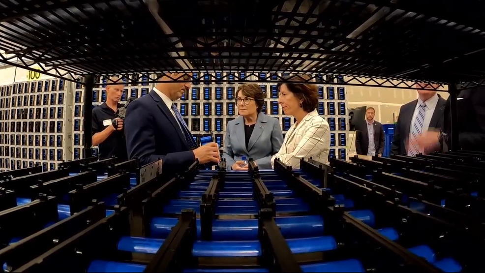 A secretária de Comércio dos EUA, Gina Raimondo, e o senador Jacky Rosen visitaram na terça-feira uma instalação que é o principal produtor de baterias de lítio do país.
