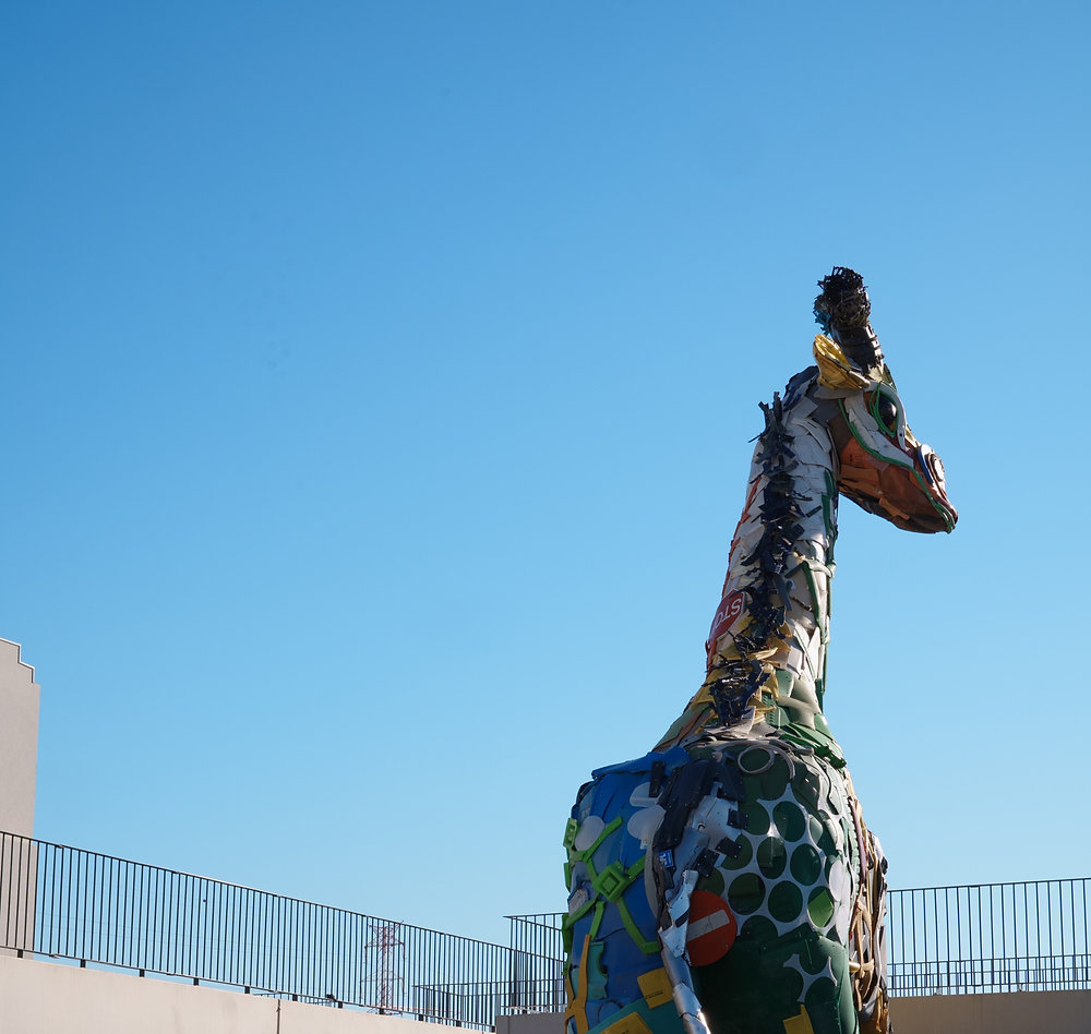Construída a partir de materiais reaproveitados, a peça marca a transição entre o passado industrial do edifício e a sua nova vocação, ligada à criatividade e ao compromisso ambiental. A escultura demorou cerca de 4 meses a tomar forma e pesa cerca de 4 toneladas, das quais cerca de 800kg são plásticos e outros resíduos.