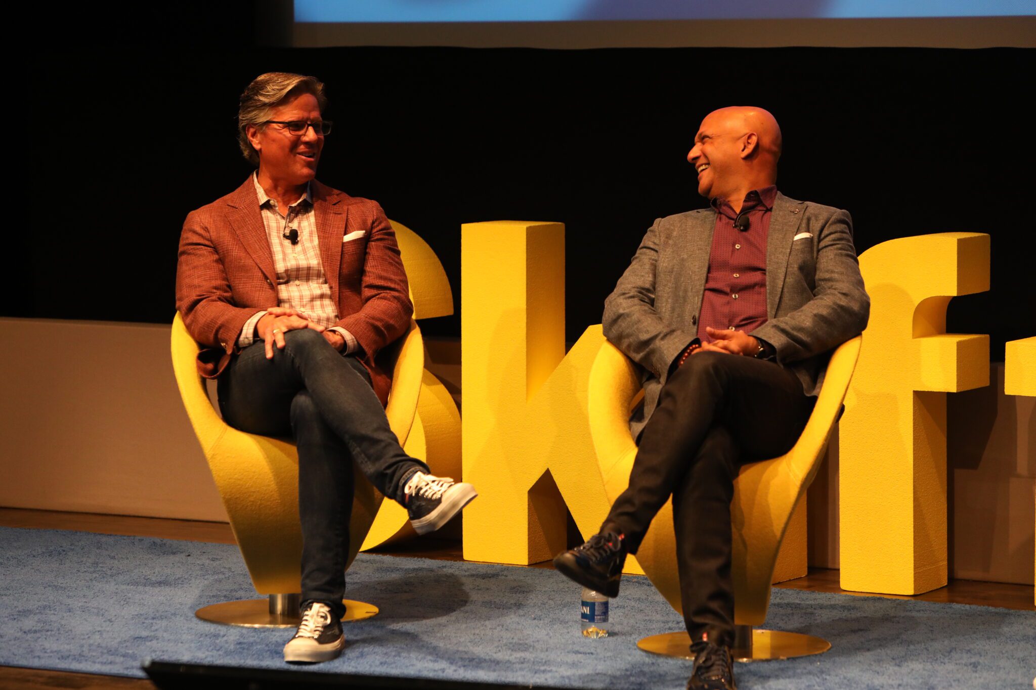 Crédito da foto: Chris Hemmeter da Thayer Ventures e Kurien Jacob da Highgate Technology Ventures. Skift Data + AI Summit 2024.