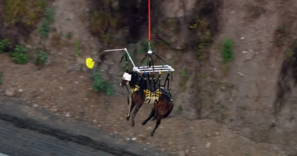 Um cavalo que ficou preso no rio Santa Ana no fim de semana foi transportado de avião para um local seguro cerca de 24 horas depois.