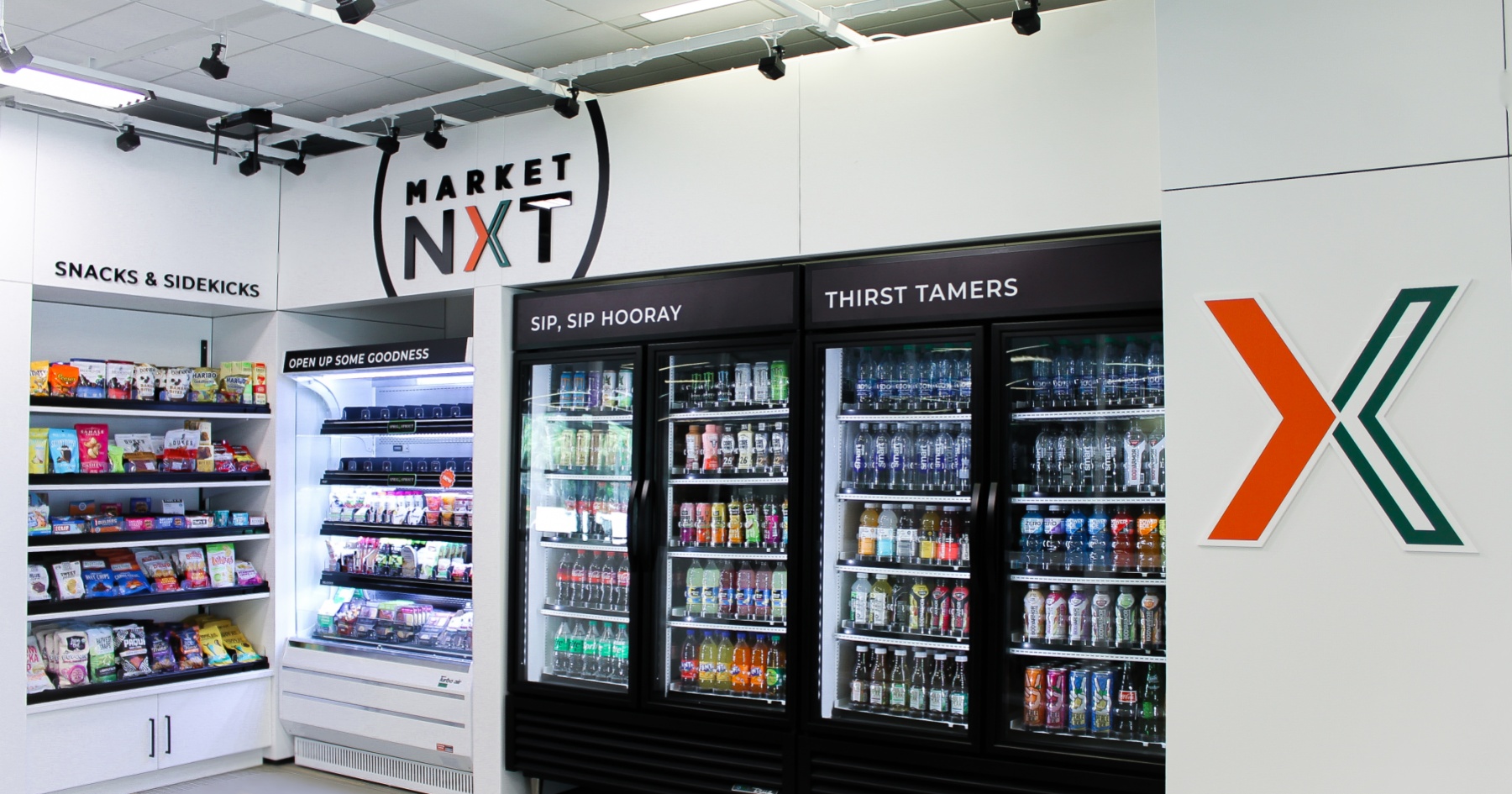 Market NXT oferece uma ampla seleção de lanches e bebidas pré-embalados. Foto cortesia de Chartwells Higher Education.