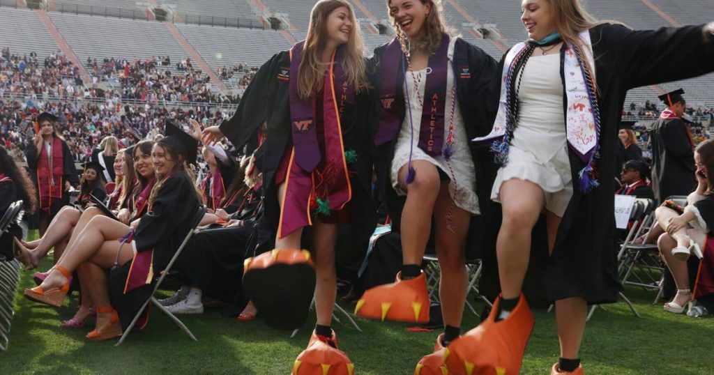 BLACKSBURG – Milhares de estudantes jogaram seus bonés de orador da turma para o alto na manhã de sexta-feira, enquanto o som familiar de “Running into the Sandman” ecoava pelo Lane Stadium.