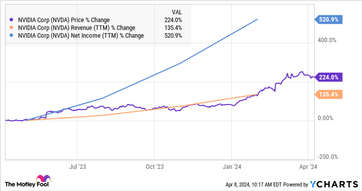 Tudo isso explica por que a Nvidia cresceu a um ritmo impressionante, levando a um salto impressionante no preço de suas ações.